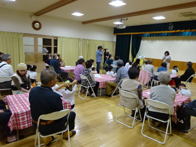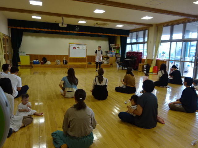 今日はベビーリトミックの日でした。たくさんの方に参加していただきました。 まずは、秋ということで、秋...