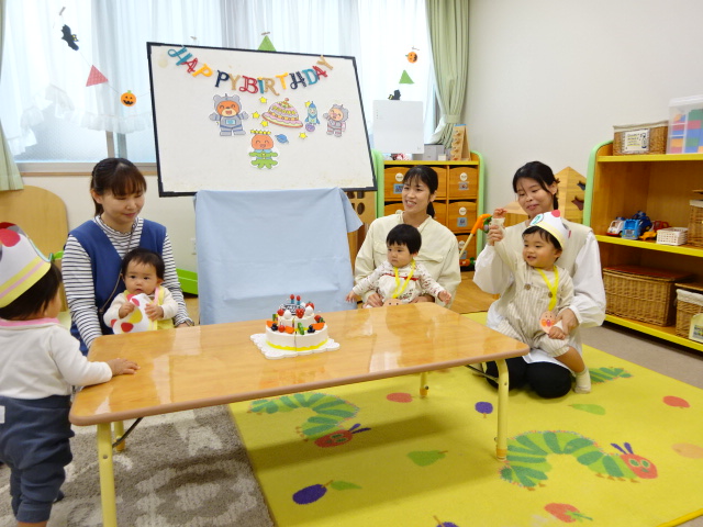 今日はお話ランドと10月生まれのお友だちのお誕生日会をしました。 まずは絵本を見ました。大好きなくだ...