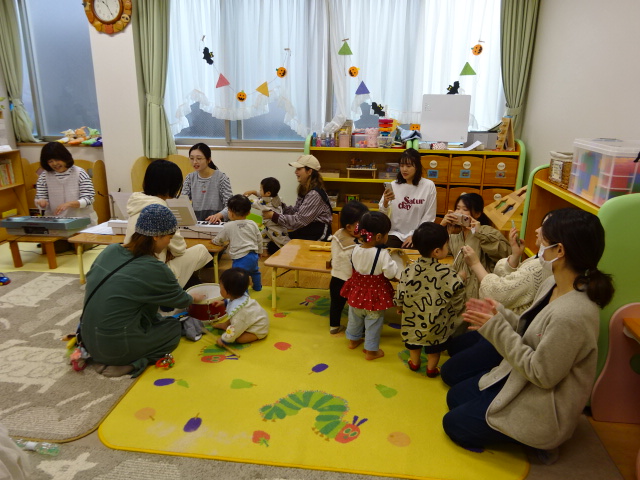 今日は1歳以上向けのリトミックの日でした。 ピアノの音に合わせて親子で楽しく身体を動かしました。 秋...
