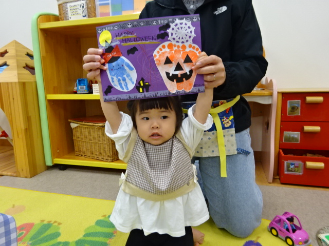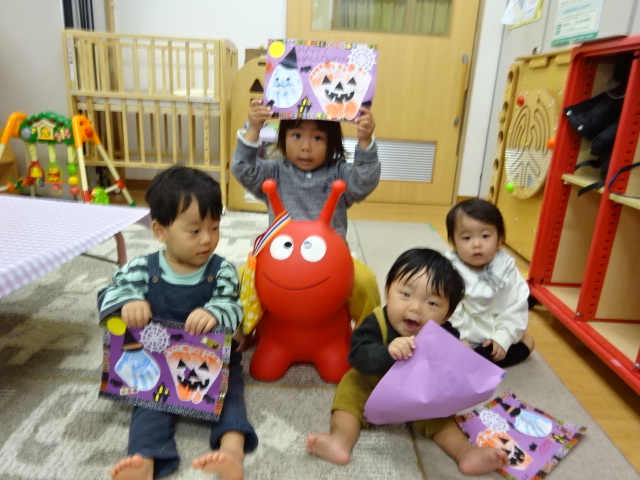 今日はハロウィン製作の2日目でした。 親子でクレヨンで描いてみたりのり付けに挑戦する子もいました。 ...