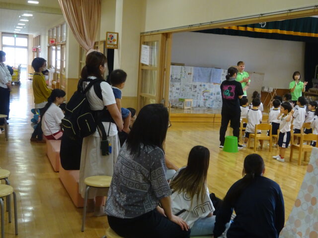 今日は3歳児(みかん組、ばなな組)の英会話教室の見学&保育参加の日