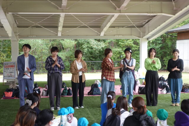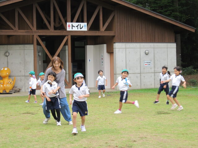 お家の人の作ってくれたお弁当を食べた後は、広場で身体を動かして大満足のこどもたちでした。