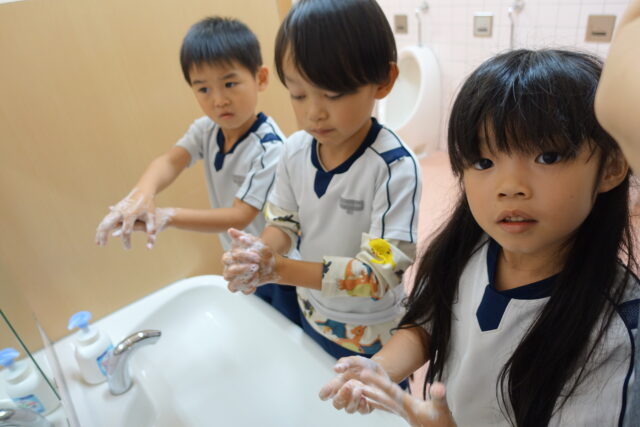 とてもきれいに洗えていて、『手洗い先生』になれるよと言われてうれしそうな子どもたちでした。