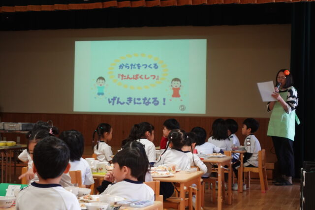と題して給食を作ってくれている魚国総本社の方が今回は宮城県気仙沼で水揚げされたピーチシャークを使った献立を考えてくれました!
