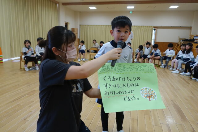 保育園クイズ、けん玉、ゴム跳び、大繩などの特技を披露してたくさんの拍手をいただきとっても嬉しそうでした☆