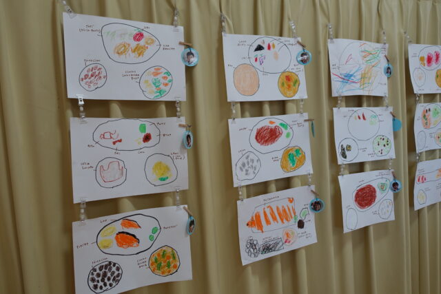 事前に子どもたちが3色栄養が揃ったバランスの良い朝ごはんの絵を描きました☆
