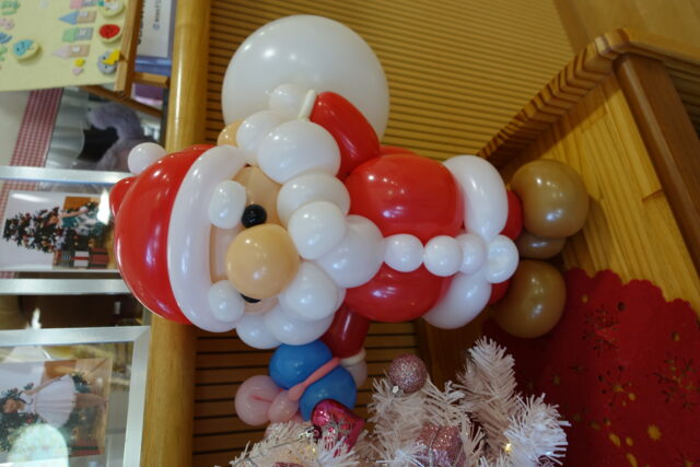 卒園児の保護者のWさんがサンタさんのバルーンを作って持ってきてくださいました。