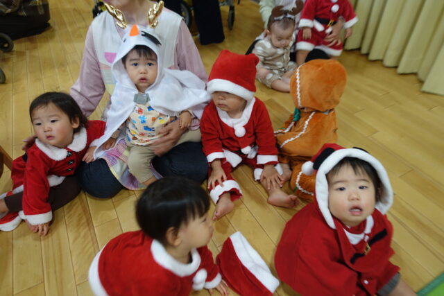 子どもたちもクリスマスコスチュームを着て登園し、テンションもMAXでした!