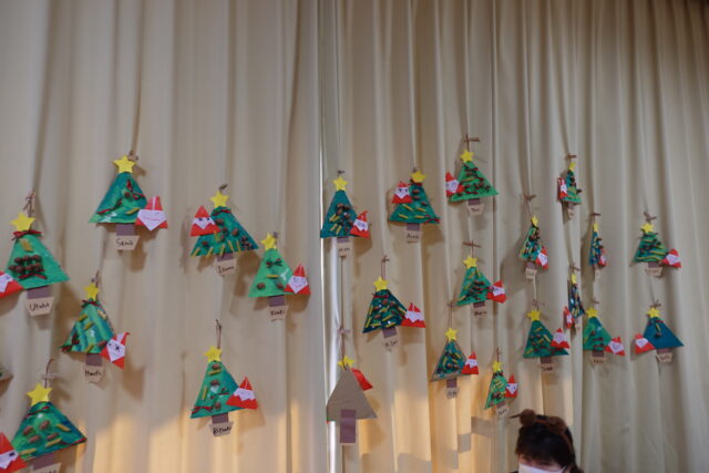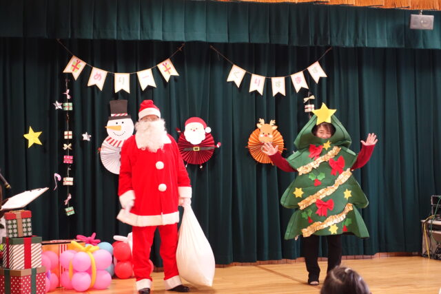 クリスマスの劇の後にはサンタさんとクリスマスツリーが登場し、大興奮の子どもたち。