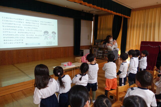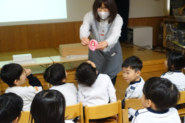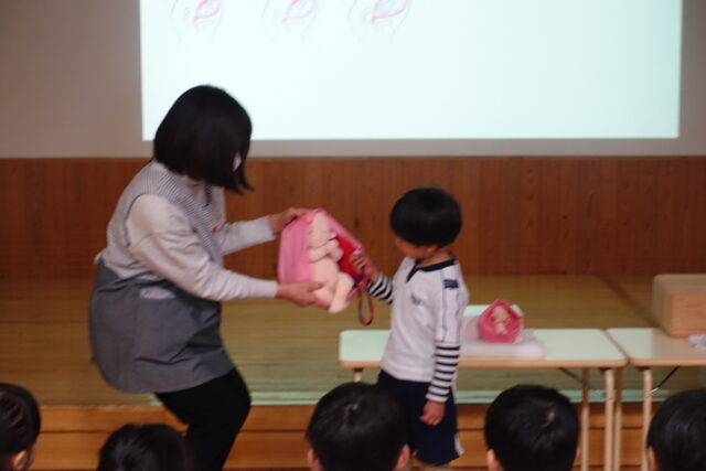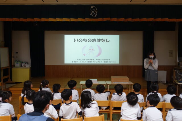 今日は園の看護師が年中児を対象に『生命(いのち)の安全教室」を行いました。