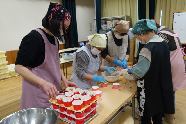 地域の方は主幹と一緒につきあがったお餅を丸めて、あんこときなこをつけてくれました。